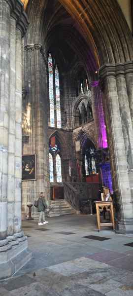 Wejście do Katedry w Glasgow, najstarszego budynku miasta, przypomina podróż w inny wiek. Wznoszące się gotyckie łuki, rzeźbione kamienne kolumny i misternie zdobione witraże tworzą atmosferę głębokiego szacunku. Promienie kolorowego światła rozlewają się po podłodze, oświetlając wieki rzemieślniczego kunsztu, które ukształtowały tę świętą przestrzeń. Cicha wielkość katedry przypomina odwiedzającym, że historia Glasgow sięga znacznie głębiej niż jej przemysłowa sława — to miasto zbudowane na wierze, sztuce i wytrwałości.