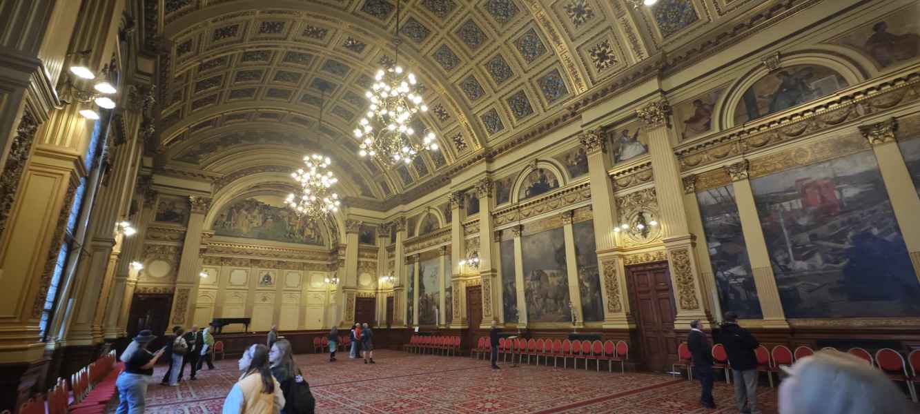 Kilka ulic dalej Ratusz Miejski w Glasgow oferuje inny rodzaj majestatu. Zakończony w 1888 roku budynek odzwierciedla pewność siebie i dumę obywatelską ery wiktoriańskiej. Wnętrze, z rozległymi marmurowymi schodami, bogato zdobionymi mozaikami i złoconymi sufitami, ukazuje niezwykłe umiejętności szkockich rzemieślników. Podczas wydarzenia Open Doors odwiedzający mogą spacerować po jego wielkich salach i komnatach rady miejskiej, które na co dzień goszczą oficjalne ceremonie i działalność miasta. To doświadczenie jest zarazem pokorne, jak i inspirujące — pozwala zajrzeć w serce życia obywatelskiego Glasgow.